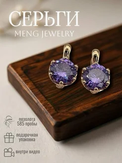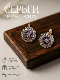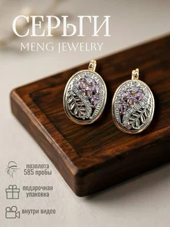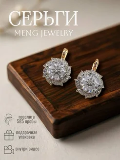 Серьги позолоченные бижутерия с цирконием