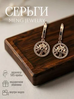 Серьги позолоченные бижутерия древо жизни