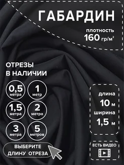Габардин черный 10м ткань для шитья