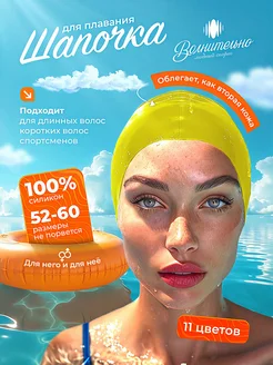 Шапочка силиконовая для плавания, цвет жёлтый, р-р 52-60