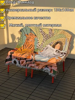 Тигр и девушка гобелен для интерьера, плед 130X160 см