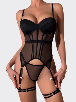 Комплект нижнего белья черный корсет стрепы