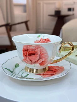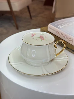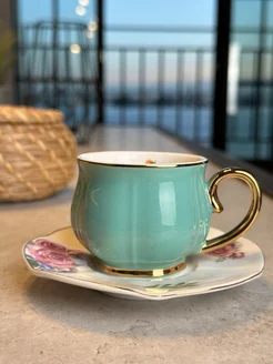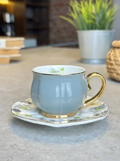 Чайная пара фарфоровая 240 мл, набор чашка и блюдце