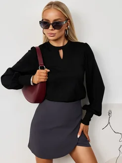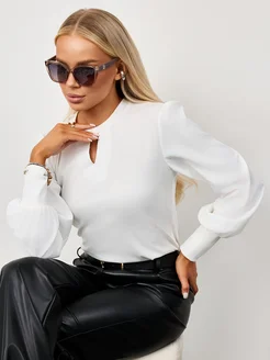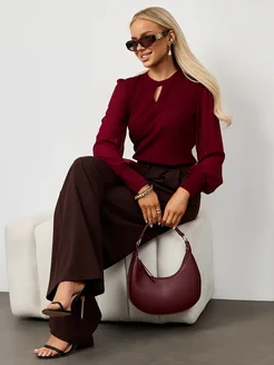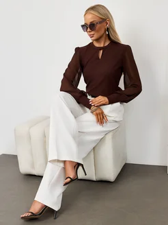 Блузка офисная нарядная сдлинным рукавом коричневый