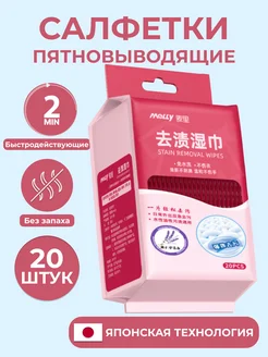 Салфетки от пятен на одежде влажные пятновыводящие 20 штук