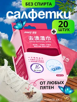 Салфетки от пятен влажные для одежды и обуви пятновыводящие