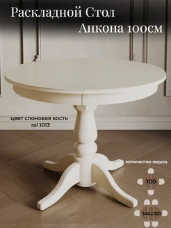 Стол кухонный раздвижной круглый деревянный Анкона, бежевый