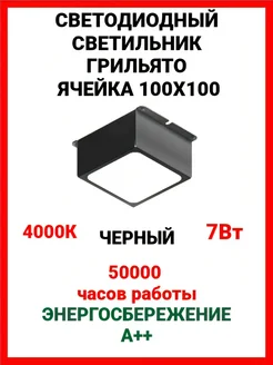 Светильник светодиодный грильято 100 мм х 100 мм, черный