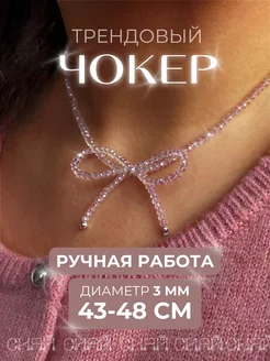 Чокер - колье на шею с бантиком, розовый