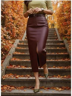Юбка кожаная макси с разрезом
