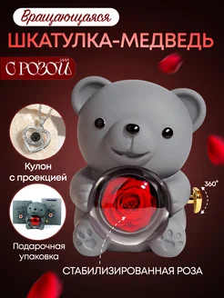 Вращающаяся шкатулка-медведь с розой и подвеской с проекцией