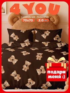 Постельное белье 2 спальное полисатин 50х70 см Мишки
