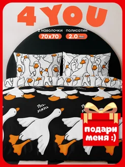 Постельное белье 2 спальное полисатин 70х70 см Гусь обнимусь