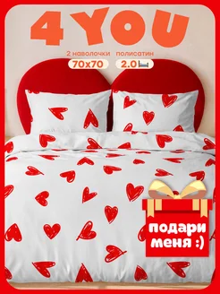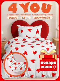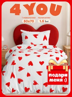 Постельное белье 1.5 спальное полисатин 50x70 Сердца любовь