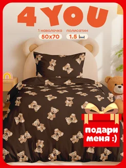Постельное белье 1.5 спальное полисатин 50x70 Мишки