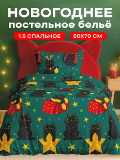 Постельное белье 1.5 спальное полисатин 50x70 Кошки коты