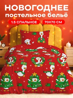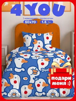 Постельное белье 1.5 спальное полисатин 50x70 Утка гусь