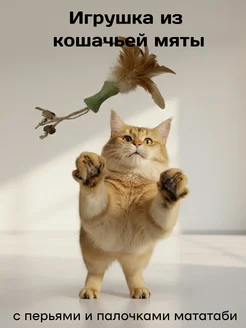Игрушка из кошачьей мяты "Котик" с перьями