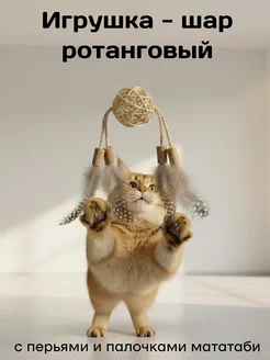 Игрушка Шар из ротанга с перьями и мататаби