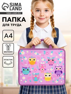 Папка для труда, А4, пластиковая, 33×26×7.5 см «Совушки»
