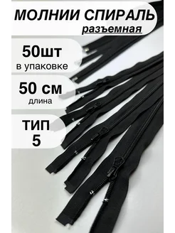 Молния пластиковая спираль разъёмная №5 50 см 50шт