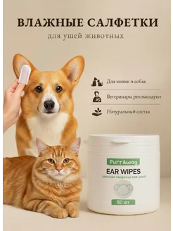 Салфетки влажные для ушей собак и кошек антибактериальные дл…