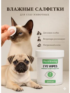 Салфетки влажные для глаз собак и кошек антибактериальные дл…