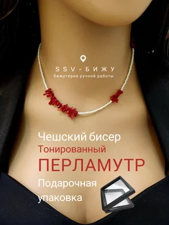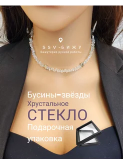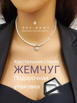 Чокер блестящий на шею с сердцем стекло жемчуг белый