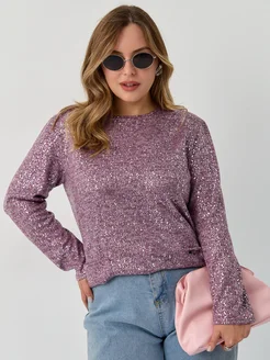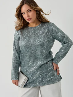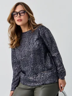 Теплая кофта свободного кроя большие размеры блестящий принт