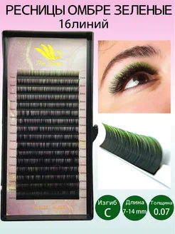 Ресницы для наращивания омбре зеленые Mix C 0.07 7-14 mm