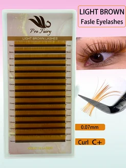 Светло коричневые ресницы для наращивания C+ 0.07 7-14mm