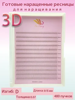 Готовые 3D пучки ресниц для наращивания 0.07 D Mix