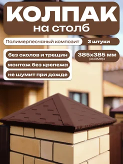 Колпак на столб забора ППК 1,5 кирпича, коричневый, 3 шт