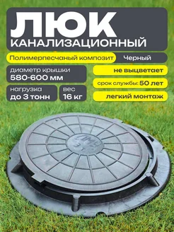 Люк канализационный полимерно-песчаный, 580-600 мм