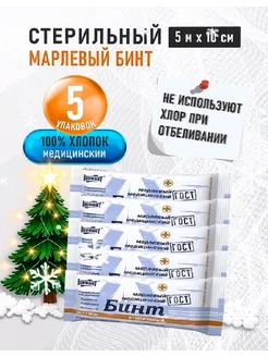 Бинт марлевый стерильный медицинский 5м х 10см, 5 шт