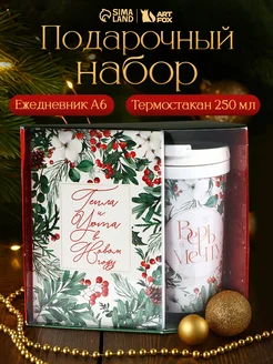 Подарочный набор новогодний, ежедневник А6, термостакан