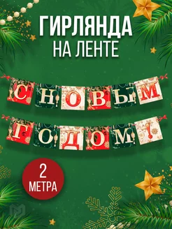 Новогодняя бумажная гирлянда растяжка,на ленте