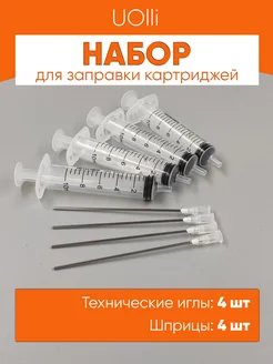 Шприц с иглой для заправки картриджей, набор 4шт