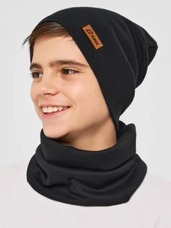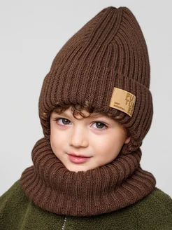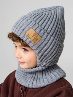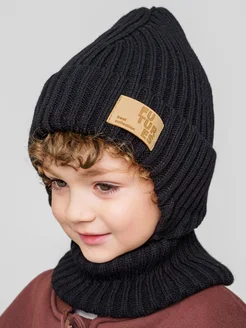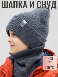 Шапка со снудом зимняя для мальчика малыша детская вязаная