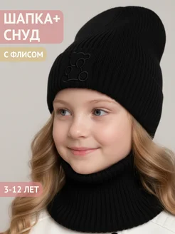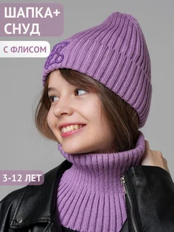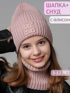 Шапка со снудом зимняя для девочки малыша детская вязаная