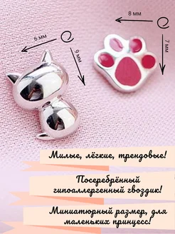 Серьги гвоздики асимметричные миниатюрные кошка-лапка