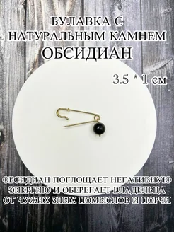 Оберег булавка с камнем обсидиан