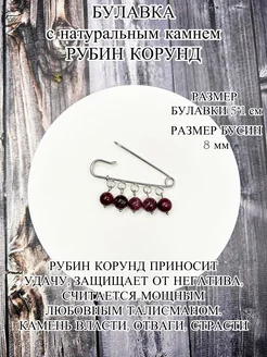Оберег булавка с камнем рубин корунд