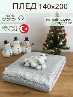 Плед покрывало на кровать диван хлопковый вязаный Турция