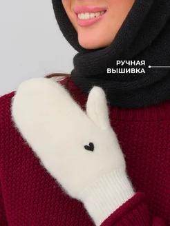 Варежки зимние теплые вязаные шерстяные с сердечком
