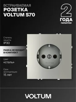 Розетка встраиваемая с заземлением 16А цвет сталь