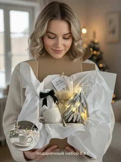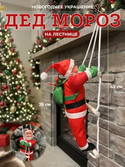 Новогоднее украшение Дед Мороз на лестнице 35 см
