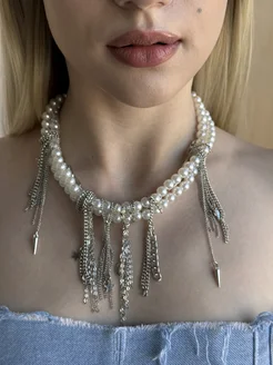 Колье на шею из жемчуга многослойное