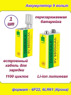 Аккумуляторная батарейка 9800 9v Крона + кабель USB