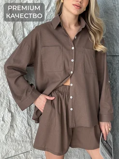 Костюм с шортами летний льняной с рубашкой